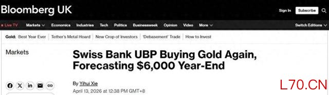 瑞联银行减持后反手加仓黄金 预计年底金价升至6000美元/盎司