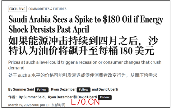 其一,下图,沙特说如果本轮冲突延续到4月,那么油价会顶到180美刀。