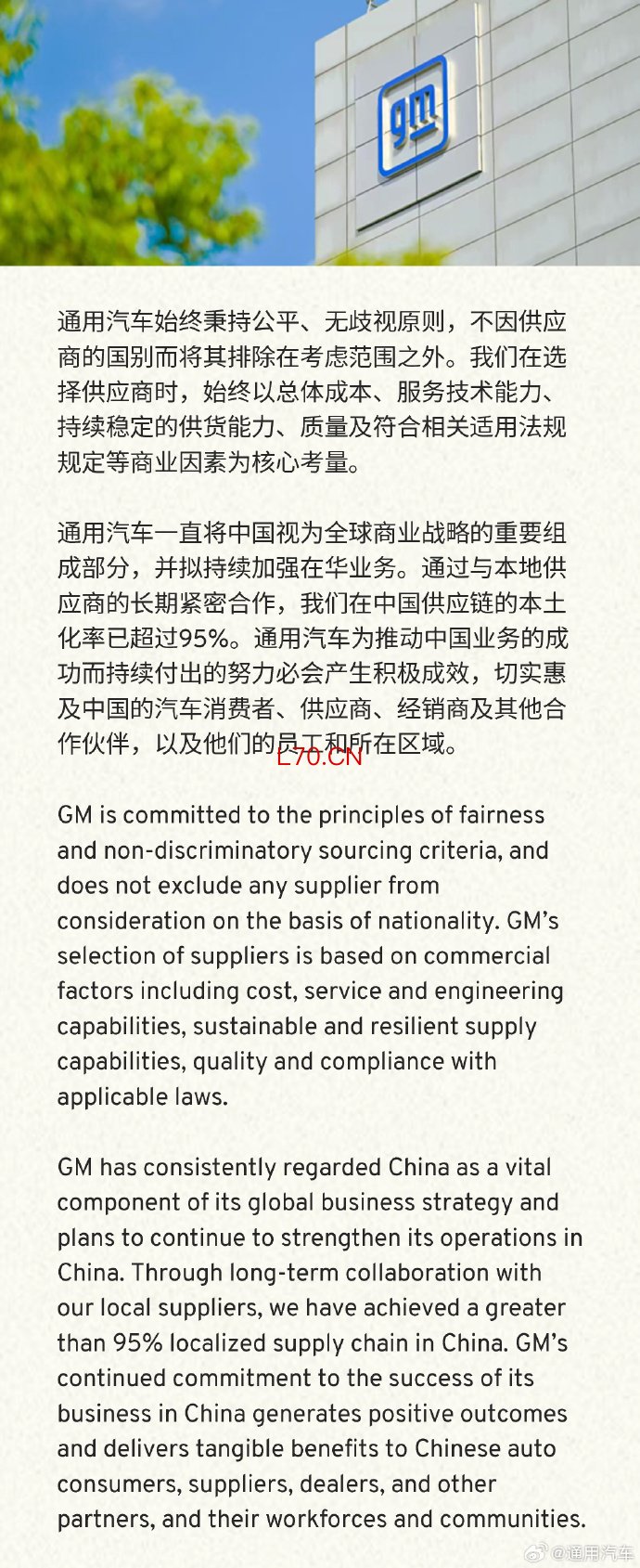 通用汽车:公司在中国供应链的本土化率已超过95%