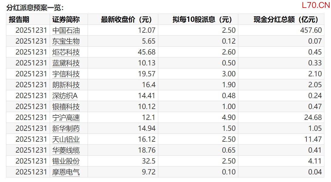 A股分红派息转增一览(3月30日):1股今日股权登记