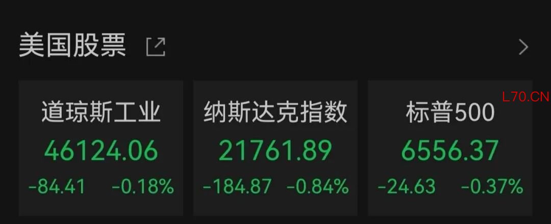 当地时间3月24日,美股三大股指全线收跌。Wind数据显示,截至收盘,道指跌0.18%报46124.06点,标普500指数跌0.37%报6556.37点,纳指跌0.84%报21761.89点。
