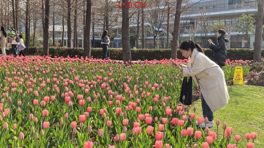 浦东锦绣文化公园郁金香盛开,吸引游客打卡。