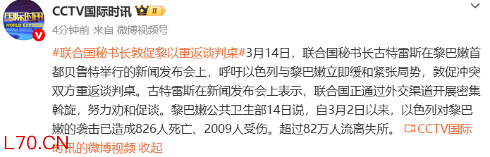 联合国秘书长敦促黎以重返谈判桌