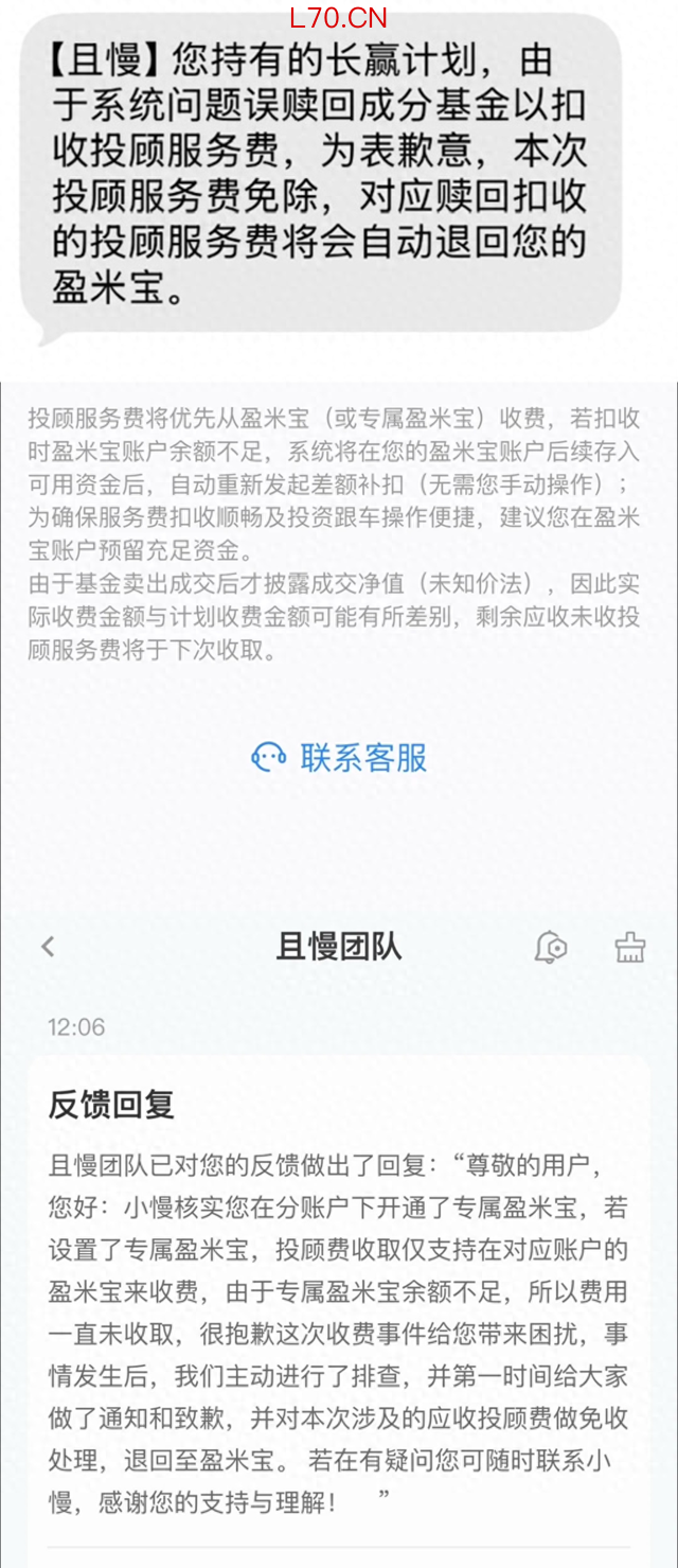 然而,实际操作中的困惑并未因此消解。有投资者向澎湃新闻记者反馈:“我知道他们要扣取投顾费,特意在盈米宝中留了一点钱,结果现在说只从专属盈米宝中收费,依旧赎回了我的基金。”